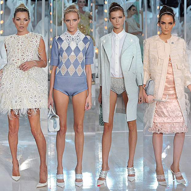 Ponieważ jest tu mowa o czerwonym dywanie, zacznę od Michelle Williams, która pokazała się w pięknej sukni Louis Vuitton, której stworzenie zajęło ponoć 300 godzin. Suknia wg mnie jest bardzo piękna, przede wszystkim ze względu na kolor, koronkę oraz baskinkę modną w tym sezonie. Michelle Williams pięknie wygląda w krótko ściętych blond włosach z delikatnym makijażem. To co mi nie odpowiada to różowa kopertówka oraz kokardka na prawym biodrze.